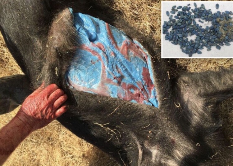 Après enquête, les autorités de la pêche et de la faune de Californie ont pointé du doigt un rodenticide anticoagulant appelé diphacinone, utilisé pour lutter contre les rongeurs dans les exploitations agricoles. Ce produit contient un colorant bleu distinctif pour signaler sa dangerosité. Les sangliers, omnivores opportunistes, ont pu ingérer ces appâts toxiques ou en consommant d’autres animaux déjà contaminés causant ainsi ce phénotype bleu vif dans leurs tissus.