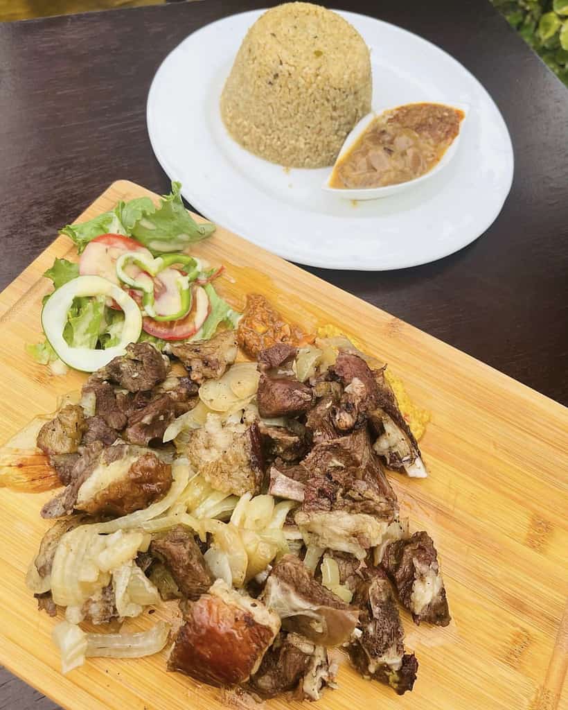 Tarif: Entre 4 000 FCFA et 5 000 FCFA le plat. Jus de 500 FCFA et 2 000 FCFA