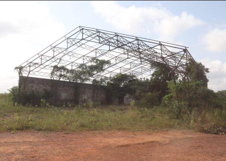 Ce qui frappe d’emblée ici, c’est la broussaille qui a poussé sur le sol de ce qui reste du hangar décoiffé de l’aérodrome. Seules résistent encore à la dégradation, de vieilles traverses métalliques sur lesquelles reposaient des feuilles de tôles aujourd’hui, totalement rongées par la rouille et dont on aperçoit des résidus par terre. Quelques pans de murs fissurés tiennent également debout et masquent ce qui reste du bureau de l’agent de navigation aérienne où tout a disparu. Portes, cadres, fenêtres, câbles électriques, sanitaires. Rien de tout cela n’existe plus. Partout, ce sont des murs et des poteaux en béton, qui ne paye pas de mine.